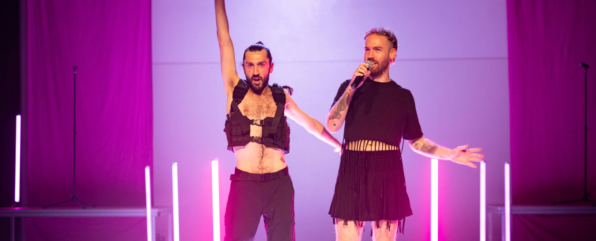 All About Us is een interdisciplinaire samenwerking tussen muzikant Jonathan Bonny (winnaar Best of Fringe Award 2024) en danser Manuel Kiros Paolini. Samen richten zij de schijnwerpers op pinkwashing door het vormen van het controversiële performance-duo Pink Armada, geïnspireerd op het iconische Russische popduo t.A.T.u.