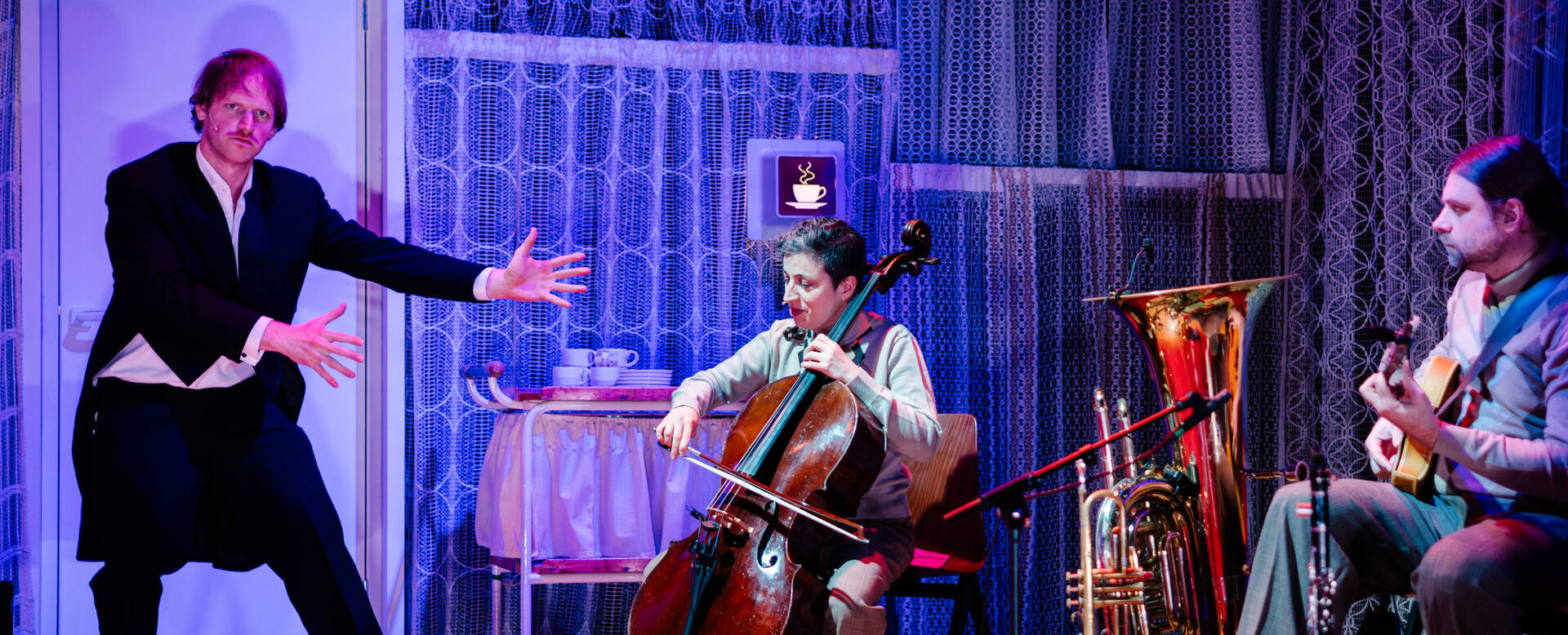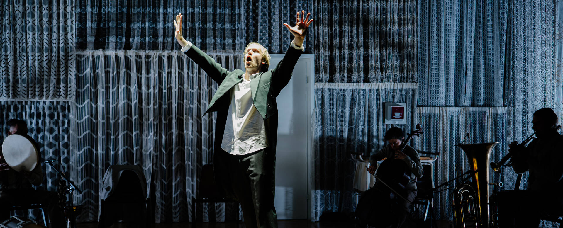 NRC"Rijkgevuld filosofisch muziektheater over een ontgoochelde goochelaar en zijn mislukte verdwijntruc."
