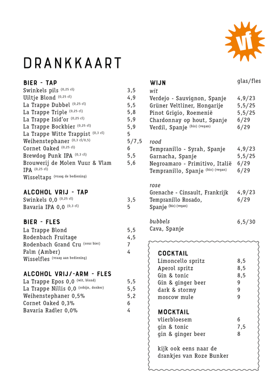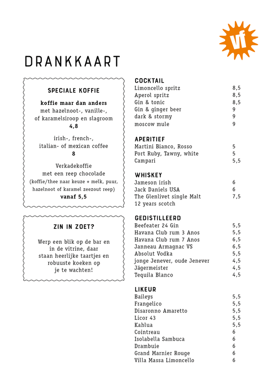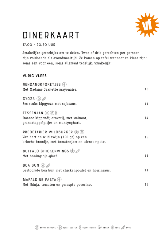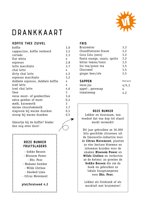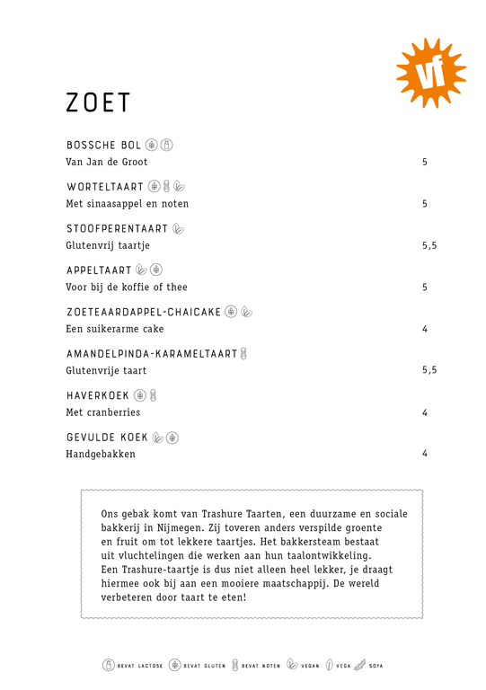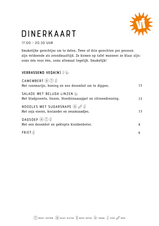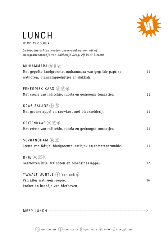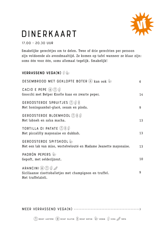 For English, click here and click on the icon with the speech bubble in the top right corner of the page (mobile devices: behind the hamburger menu). Then select ‘English’. You will now see the English version (by Google Translate) of the menu.