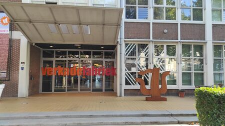 Aan de zijkant van de Verkadefabriek is in grote, kleurige letters onze naam te lezen. Dit is het werk van de Amsterdamse kunstenaars Yolanda Huntelaar en Roosje Klap. Op twee gevels langs de doorgaande wegen staat de tekst VERKADE en eronder staat ondersteboven FABRIEK. De woorden staan in verschillende kleurschakeringen van rood, oranje en geel op de glazen panelen gezeefdrukt. Als het donker wordt, treedt een raster van LED-lampjes in werking aan de spoorzijde. Hiermee kunnen behalve de naam van het gebouw ook nog andere teksten worden getoond.