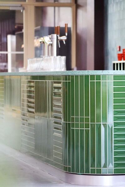 Niet te missen: de nieuwe bar, met veel (planten)groen en een opvallend rood frame. Een deel van de bar is hergebruikt, want duurzaamheid vinden we belangrijk. Het rood zie je ook terug in de kozijnen van de ramen en de extra deuren naar buiten, die de Serre verbinden met de Buitenserre.